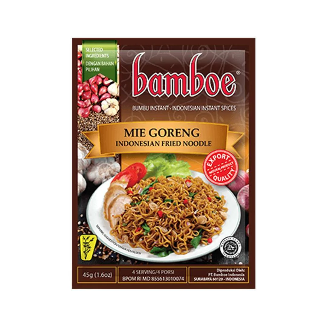 Bamboe Mie Goreng is Indonesian stir-fried noodle seasoning paste from Bamboe, a renowned Indonesian instant spice since 1968 that crafted using selection of high-quality natural ingredients, and resulting in a delightful taste that is pleasing to the palate. Mi Goreng is Indonesian stir-fried noodle dish that can be enjoyed with fried eggs, chicken, shrimp, chicken, beef, meatball, sausage, and vegetables. Grab this Indonesian instant seasoning for your Indonesian dish creation with Bamboe!