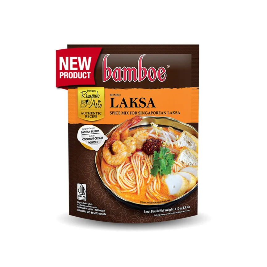 Bamboe Premium Singaporean Laksa is an easy and delicious instant seasoning mix that requires no extra cooking or seasoning for Laksa. Just add it to your dish for a perfectly balanced, spicy, and savory laksa flavor, made rich with coconut milk. This comes in 110gr package.