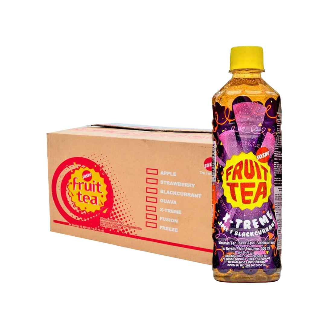 Fruit Tea X-Treme, a refreshing fruit-flavored tea beverage crafted with apple and blackcurrant flavor. Made with selected tea leaves and fruit juice. A practical tea drink to quench your thirst and refresh your day. This Indonesian tea comes in 500ml PET bottle.