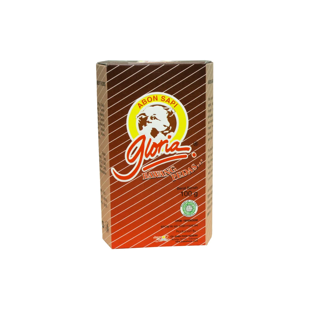 Gloria Abon Sapi Bawang Pedas (Gloria Spicy Onion Beef Floss) is a traditional Indonesian beef floss product with spicy flavor and savory onion. Renowned for its savory flavor and fine texture, it serves as a versatile condiment or snack. Made from shredded and seasoned beef, Gloria Abon Sapi is a popular choice for those seeking a flavorful and convenient addition to various dishes or enjoyed on its own. This comes in 100gr.