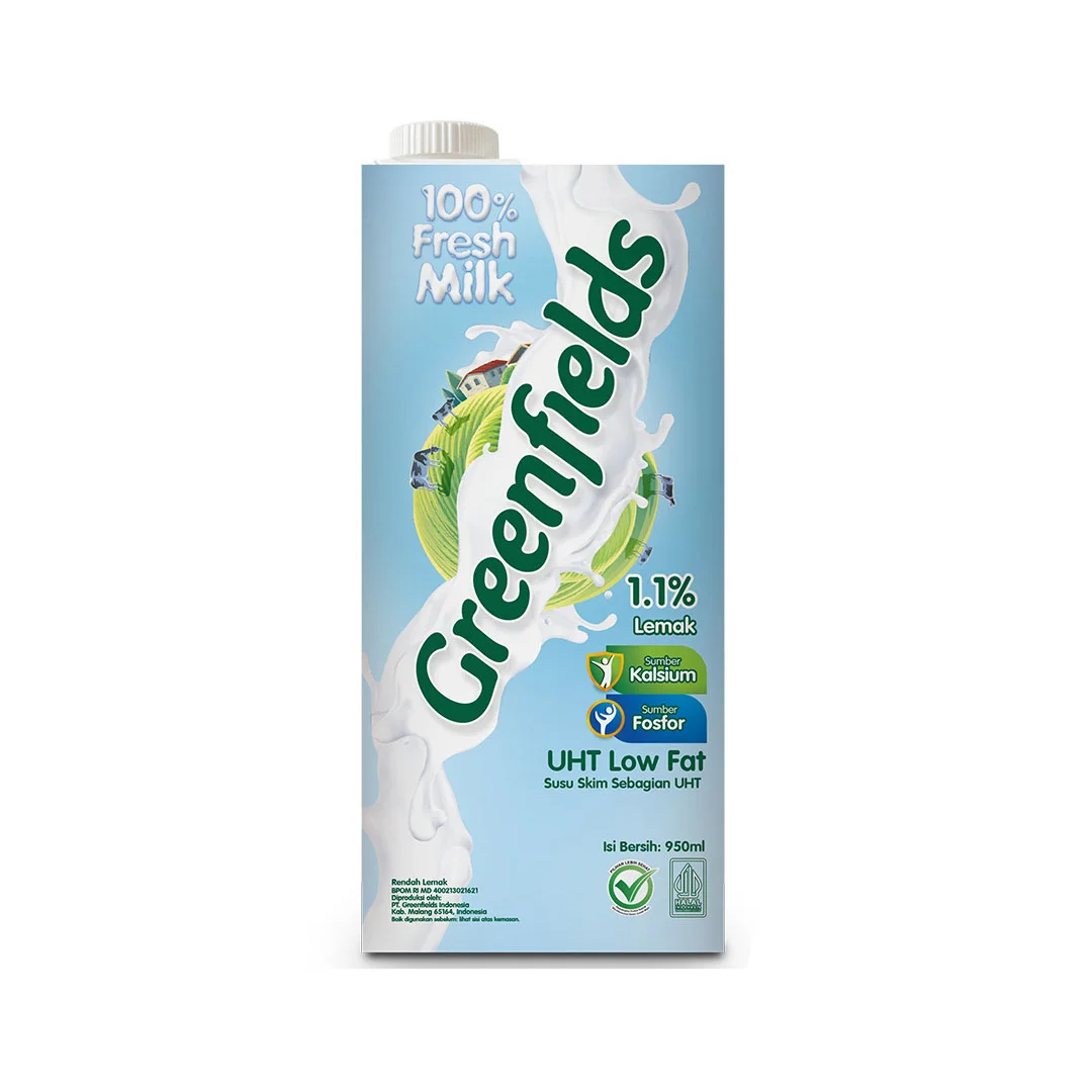 Greenfields UHT Low Fat Milk is dairy milk that tasty and healthy. With 1.1% fat, you can enjoy the creamy goodness of milk while maintaining a balanced diet. Sourced directly from our farms and processed using the latest technology, our milk is fresh and full of flavor. This beverage comes in 950ml.