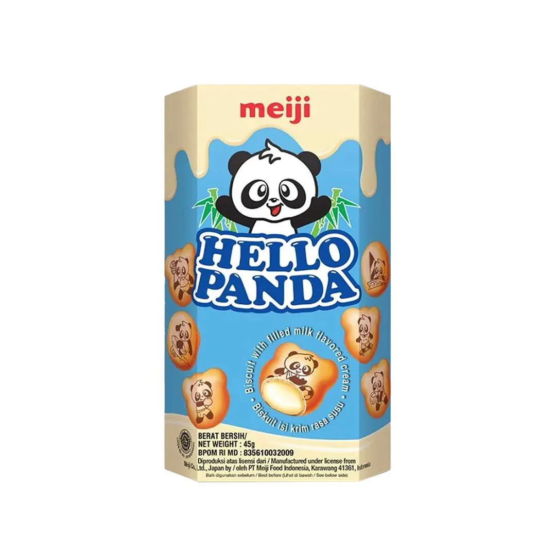 Hello Panda Milk Vanilla is a beloved Indonesian snack featuring bite-sized biscuits filled with sweet milk vanilla cream. Adorned with cute panda faces, these treats are known for their delightful combination of crunch and sweetness. Convenient and delicious, they are a popular choice for on-the-go snacking.