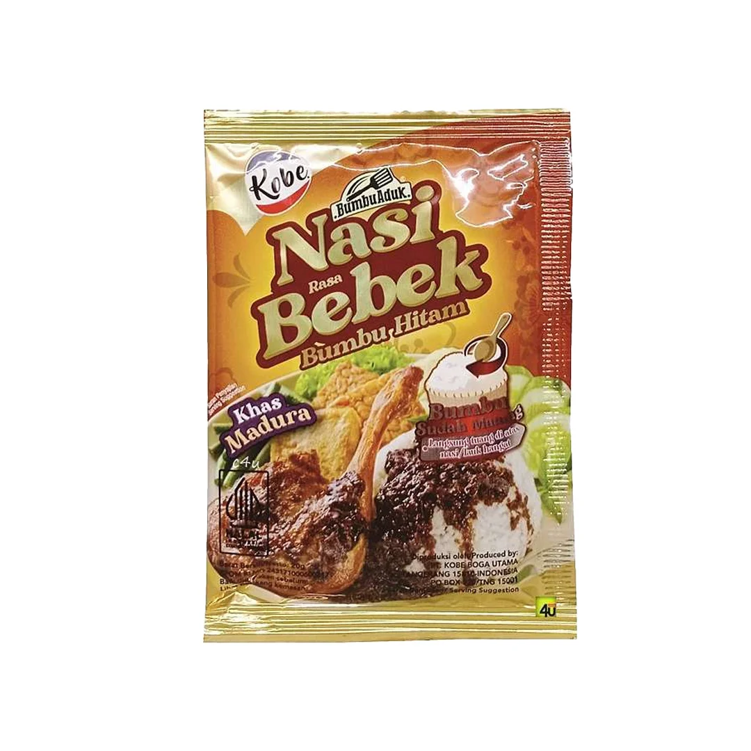 Kobe Bumbu Nasi Bebek is a ready-to-use seasoning with the rich, savory flavor of Madura-style black duck seasoning that’s sure to whet your appetite. It’s incredibly easy to enjoy—just pour it over fried duck or serve it as a flavorful accompaniment to warm rice. This thick, rich sauce has a savory, spiced taste, capturing the delicious essence of Nasi Bebek Madura from Indonesia. This comes in 15gr package.