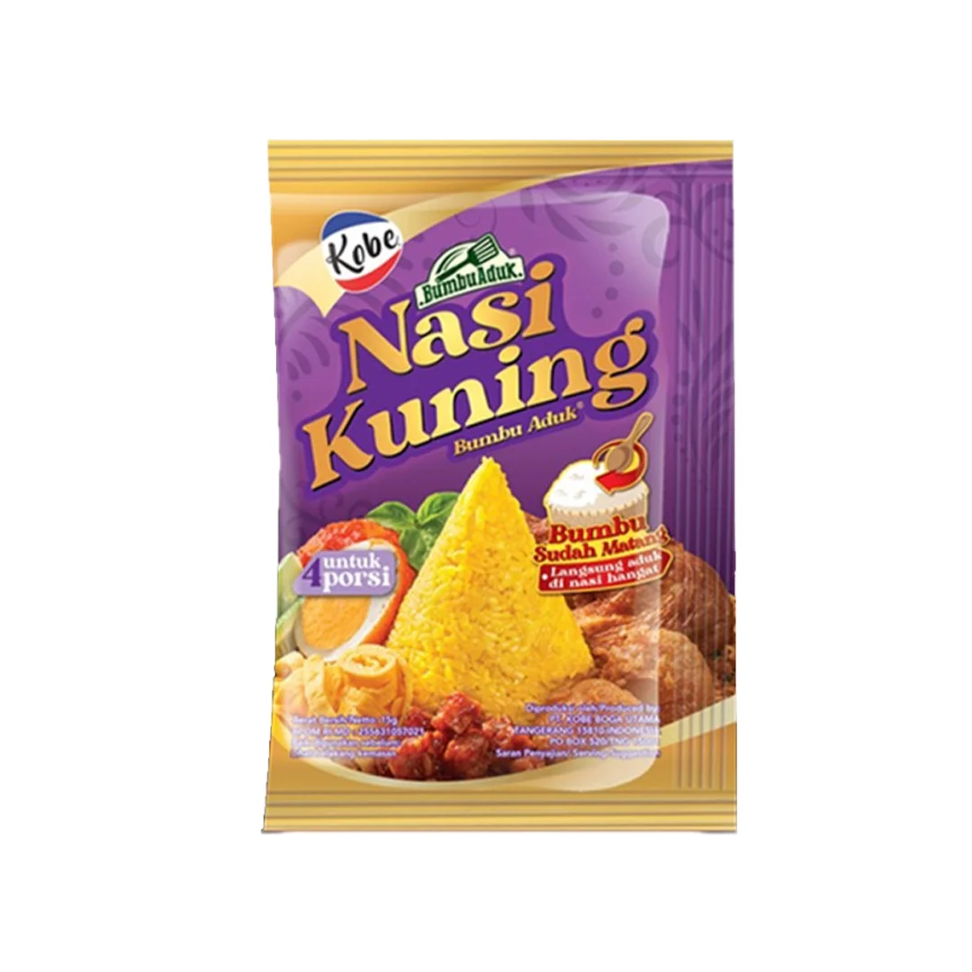 Kobe Bumbu Nasi Kuning is a convenient, pre-cooked Indonesian seasoning that lets you make delicious yellow rice in minutes. Simply stir it into warm rice for an authentic, savory flavor with a perfect blend of turmeric and high-quality spices. Made with real turmeric and includes coconut milk and spices for a complete, aromatic dish. Enjoy the rich, fragrant taste of traditional yellow rice with ease. This comes in 15gr package.