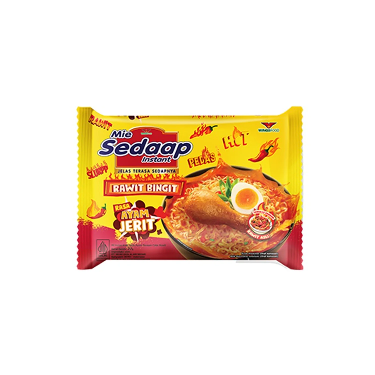 Mie Sedaap Rawit Bingit Ayam Jerit is an Indonesian instant noodle that delivers the authentic heat of cayenne pepper, combined with chewy noodles that stay firm, and a fiery chicken broth that packs a punch. Made from quality ingredients and hygienically processed, it comes in a 90gr package.