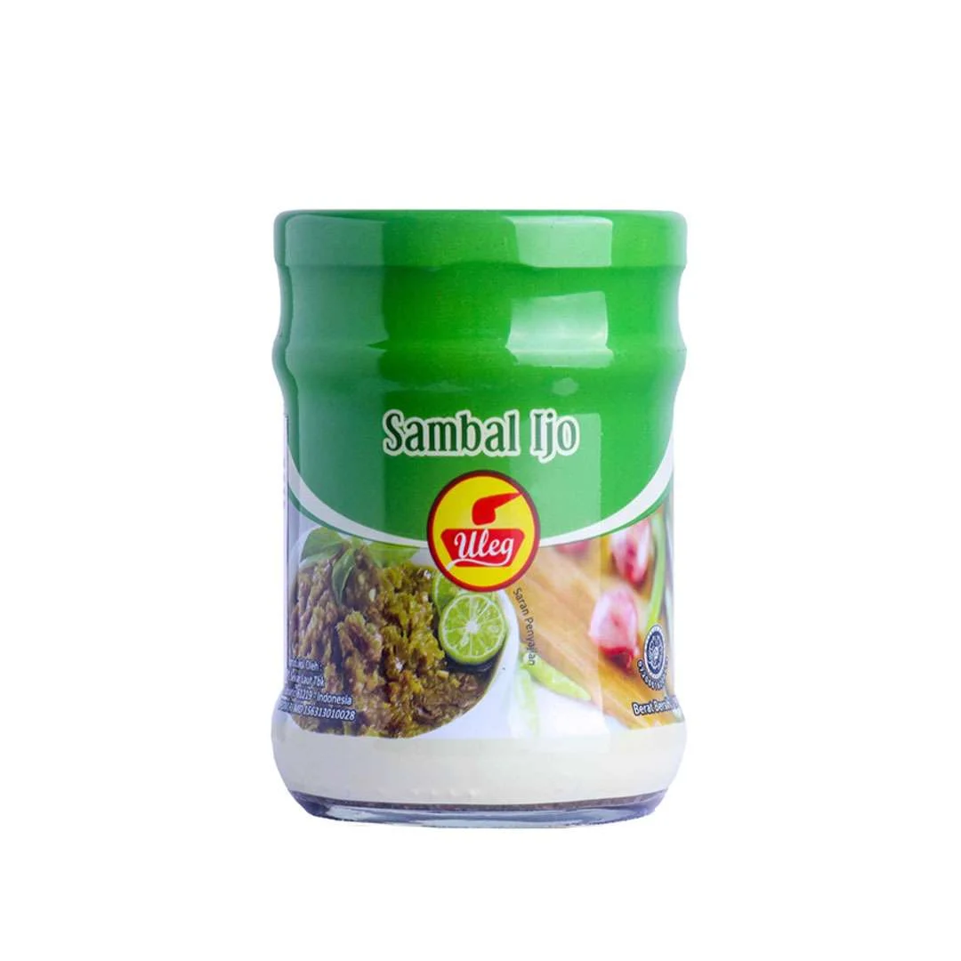 Uleg Sambal Ijo (Green Chili Sauce) is grind-homemade chili sauce made from selected green chilies and any other high-quality spices. It can enhance the flavor of your dishes with Padang-style sambal from Indonesia. This Indonesian sambal (or chili sauce) comes with in jar package that you can share with family and friends!
