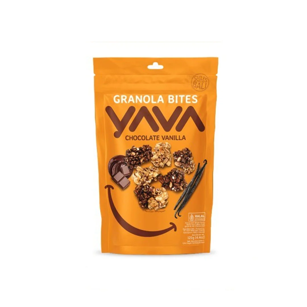 Yava Granola Bites Chocolate Vanilla is a healthy snack made from a combination of granola, rolled oats, fresh cashews, brown rice, vanilla, and cocoa from Sulawesi, Indonesia. Really perfect for early morning snack or afternoon pick-me-up. Now you can enjoy granola on the go and this is available in 125gr pouch package.